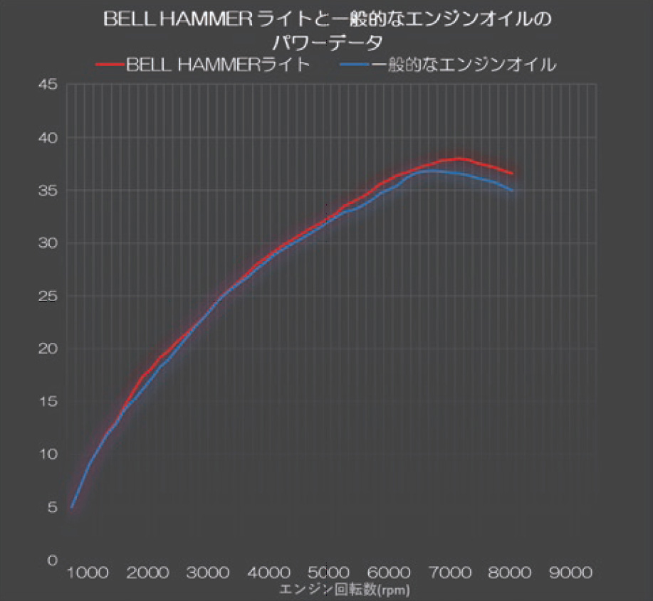 パワーデータを取りながら、一般的なエンジンオイルと比較検証しました。