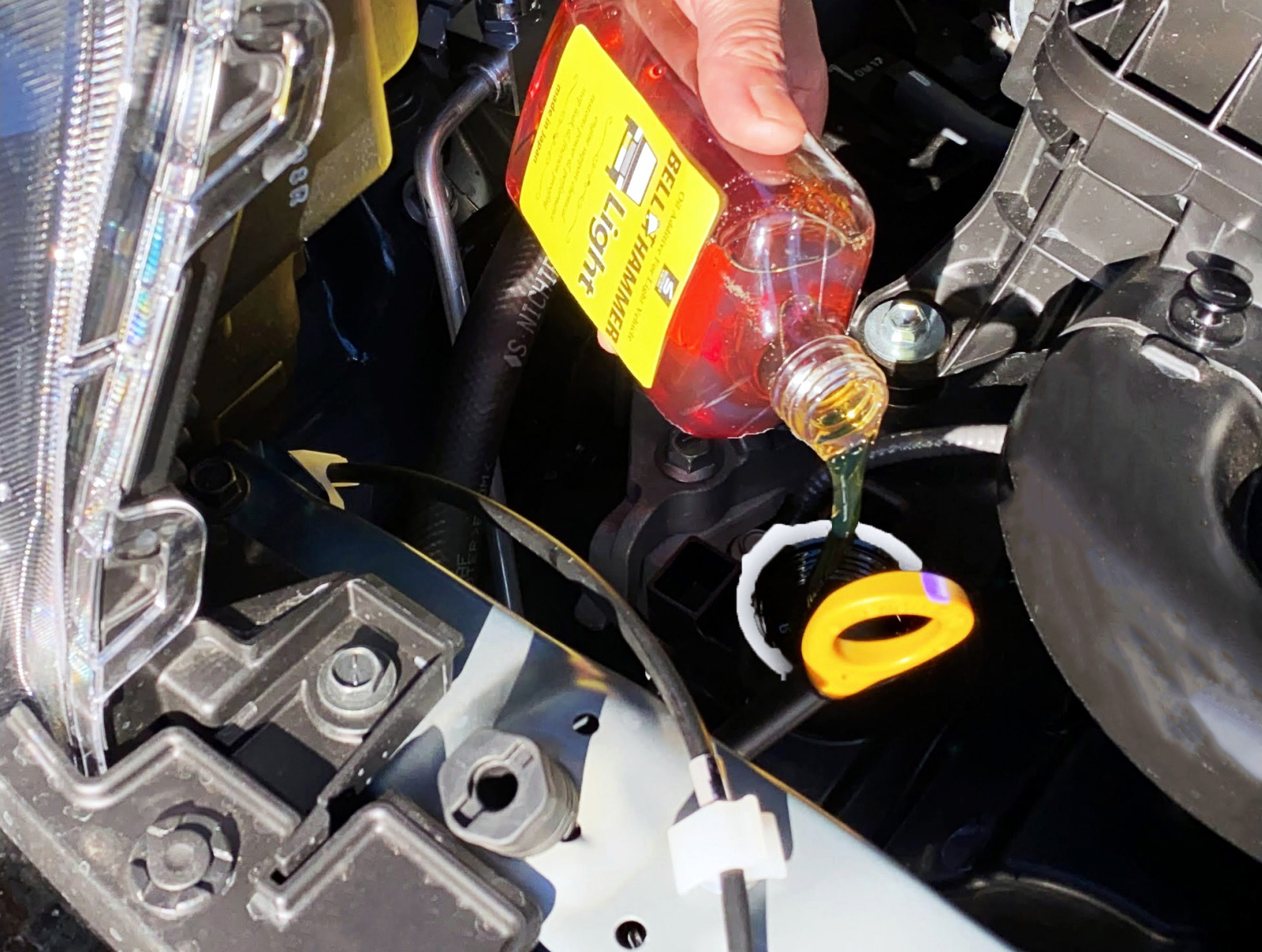 - 本品を注油口から1本全量を注ぐ 火傷に注意!