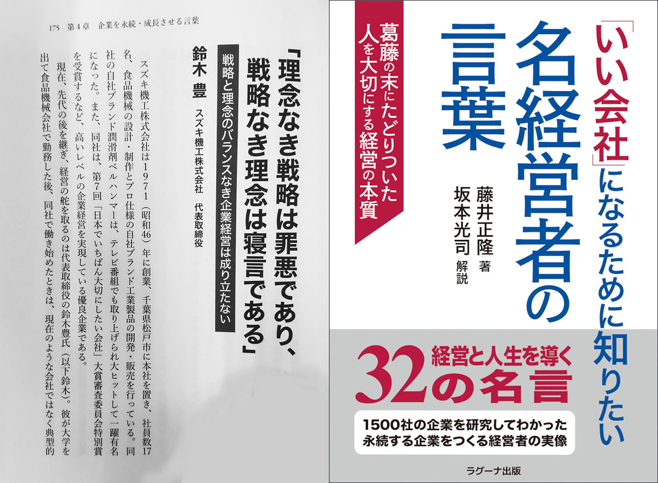 藤井正隆『「いい会社」になるために知りたい 名経営者の言葉』に掲載・紹介されました(P175~180)