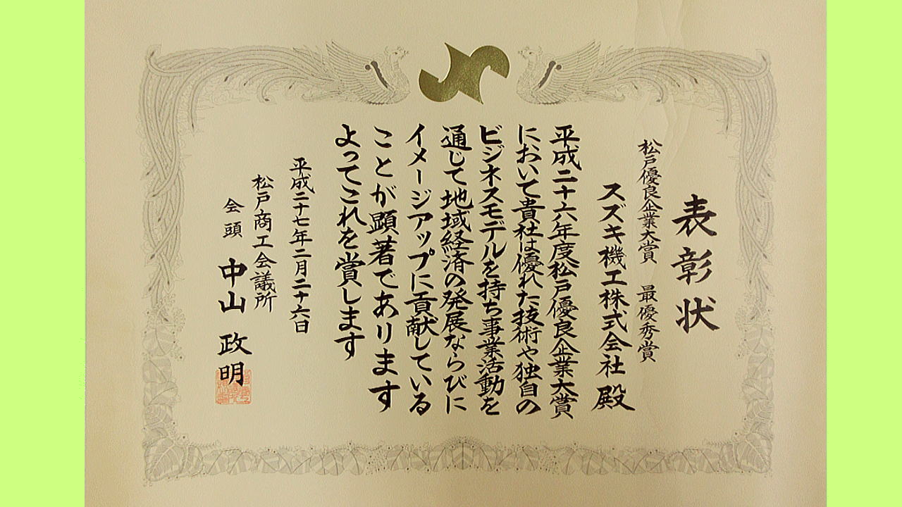 松戸優良企業大賞にて最優秀賞を受賞しました