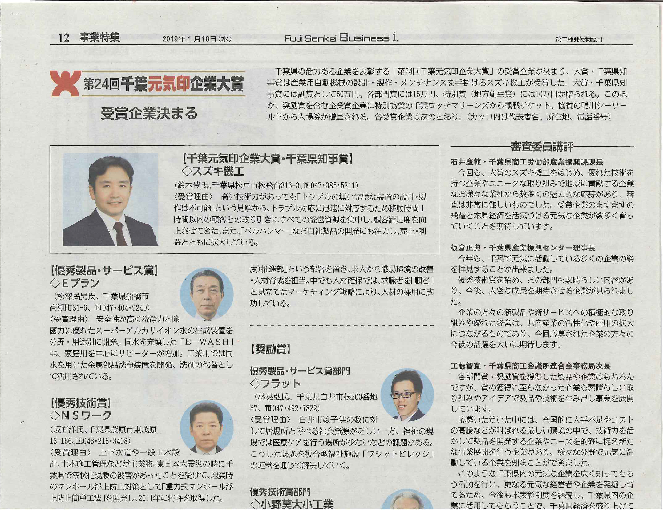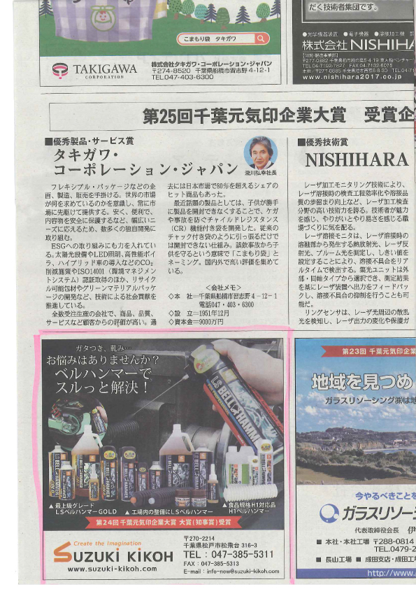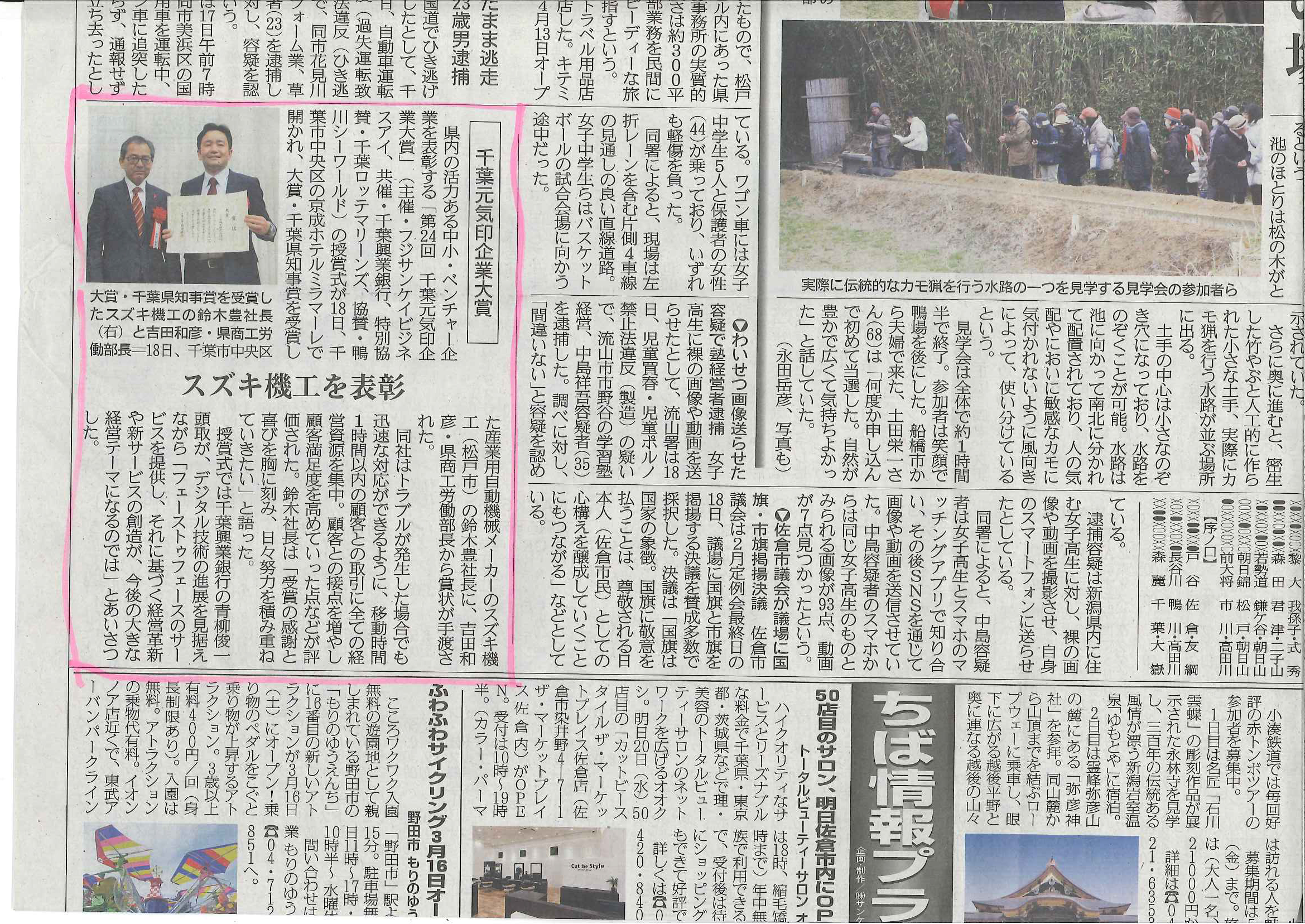 第二十四回千葉元気印企業大賞 大賞を受賞しました