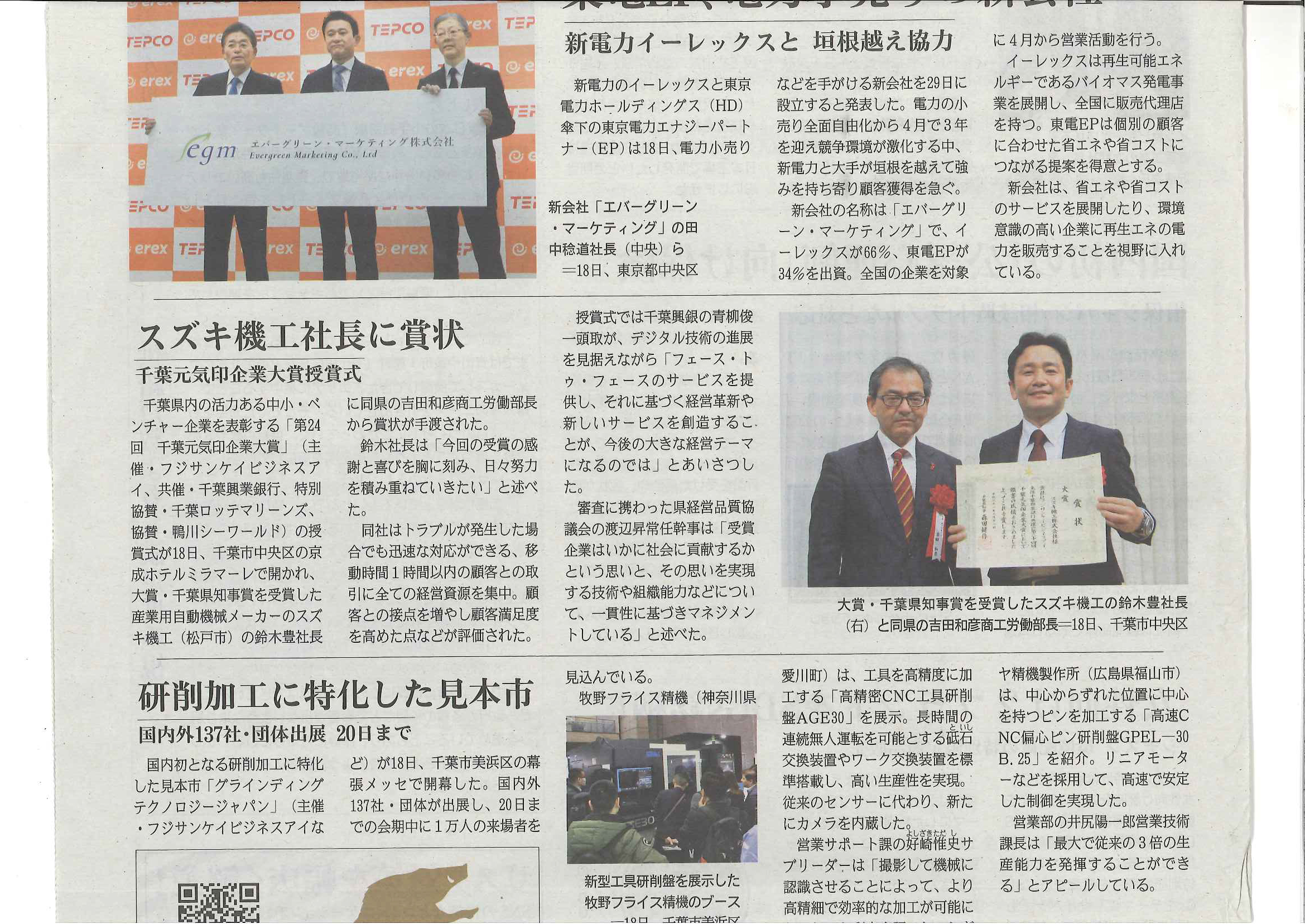 日刊工業新聞3月23日有力企業8社の成長戦略「キーマン」に聞くに掲載されました