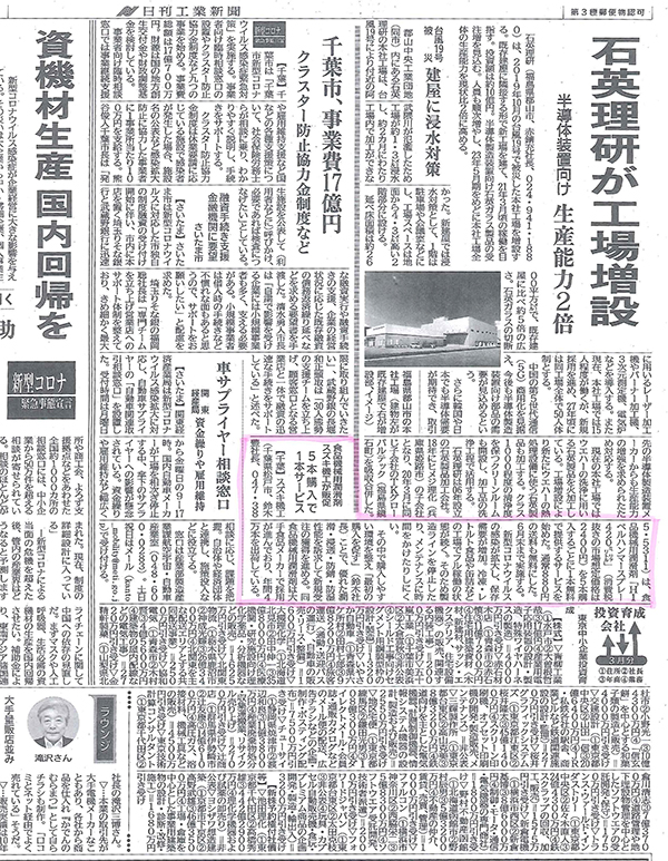 日刊工業新聞『不撓不屈NO.1~4』掲載されました